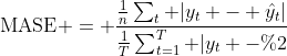 The Mean Absolute Scaled Error (MASE) (Hyndman & Koehler, 2006) is defined as <img src=“https://latex.codecogs.com/png.latex?%0A%5Ctext%7BMASE%7D%20=%20%5Cfrac%7B%5Cfrac%7B1%7D%7Bn%7D%5Csum_%7Bt%7D%20%7Cy_t%20-%20%5Chat%7By%7D_t%7C%7D%7B%5Cfrac1T%5Csum_%7Bt=1%7D%5ET%20%7Cy_t%20-%2 …